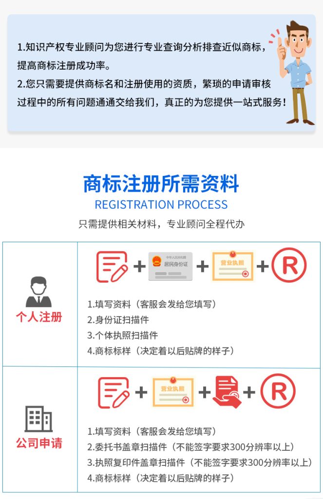 商標(biāo)注冊(cè)流程 商標(biāo)注冊(cè)申請(qǐng) 便捷易用,簡(jiǎn)單高效 遞交迅速,反饋及時(shí) 全流程掌控,隨時(shí)查看進(jìn)度 專家輔助申請(qǐng) 專業(yè)人員全流程服務(wù) 商標(biāo)檢索分析,評(píng)估成功率 優(yōu)化注冊(cè)方案,全方位保護(hù) 擔(dān)保注冊(cè)申請(qǐng) 專業(yè)人員精確評(píng)估 平衡風(fēng)險(xiǎn)與機(jī)遇 風(fēng)險(xiǎn)共擔(dān),讓您免去后顧之憂,失敗退款